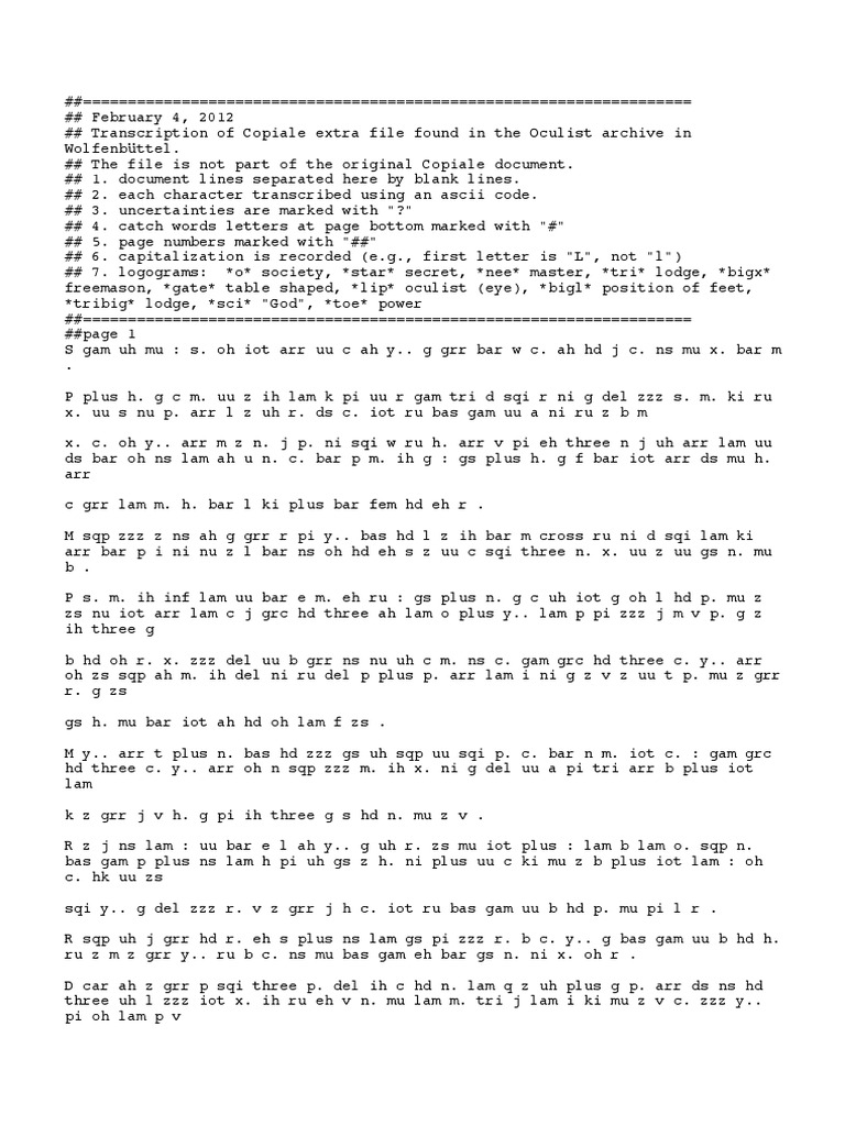 Copiale Extra Transcription Encodings Written Communication